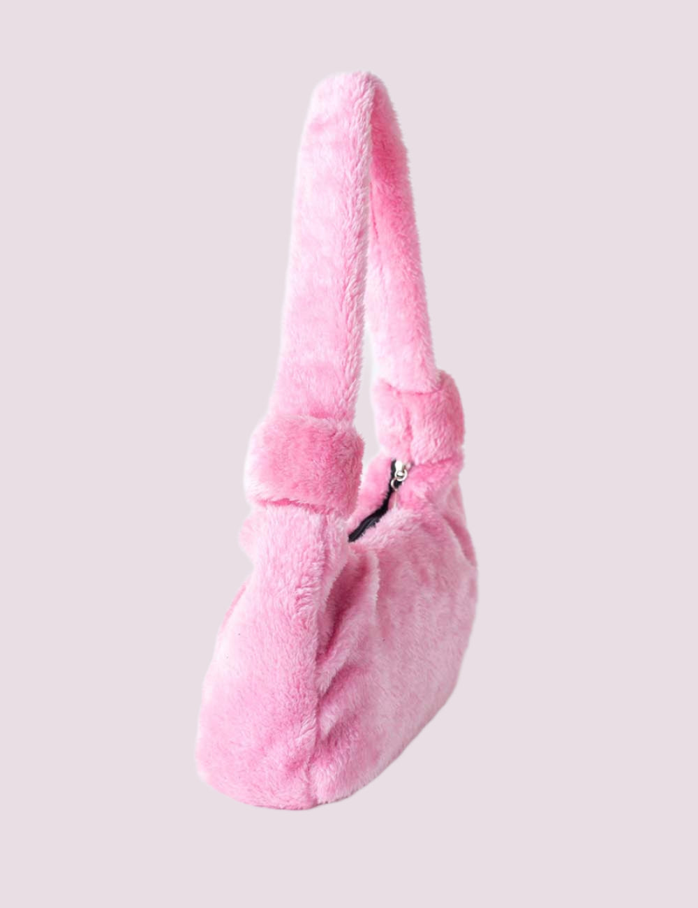 The Bubblegum Bliss Shoulder Bag is a playful burst . Wrapped in ultra-soft faux fur in a vibrant bubblegum pink, this compact bag is designed to turn heads and lift moods. Its curved silhouette and padded handle add a plush, almost toy-like charm—perfect for bold fashion lovers or a cheeky twist on casual outfits. Whether you're hitting the city, a concert, or just embracing your inner pop princess, this fluffy little icon brings fun, flair, and comfort all in one.
